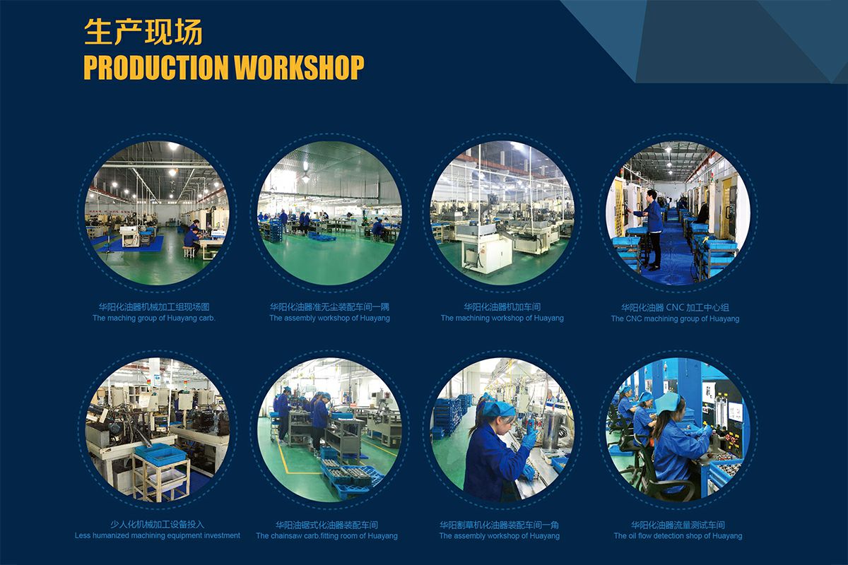 현재 회사는 'HUAYANG'과 'GREENLOG'라는 두 개의 기화기 브랜드를 관리할 권리를 보유하고 있습니다. 오늘날 'Huayang' 또는 'GREENLOG'가 표시된 각 기화기는 다음과 같은 시설에서 처리되어야 합니다. 항온 및 먼지 없는 피팅 공장, BROHTHER/FANUC/HAAS 머시닝 센터, SUGINO 드릴, TESA 좌표 측정기 등 정밀 가공 및 측정 장비, HORIBA 배기 분석기 등.